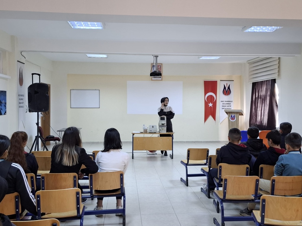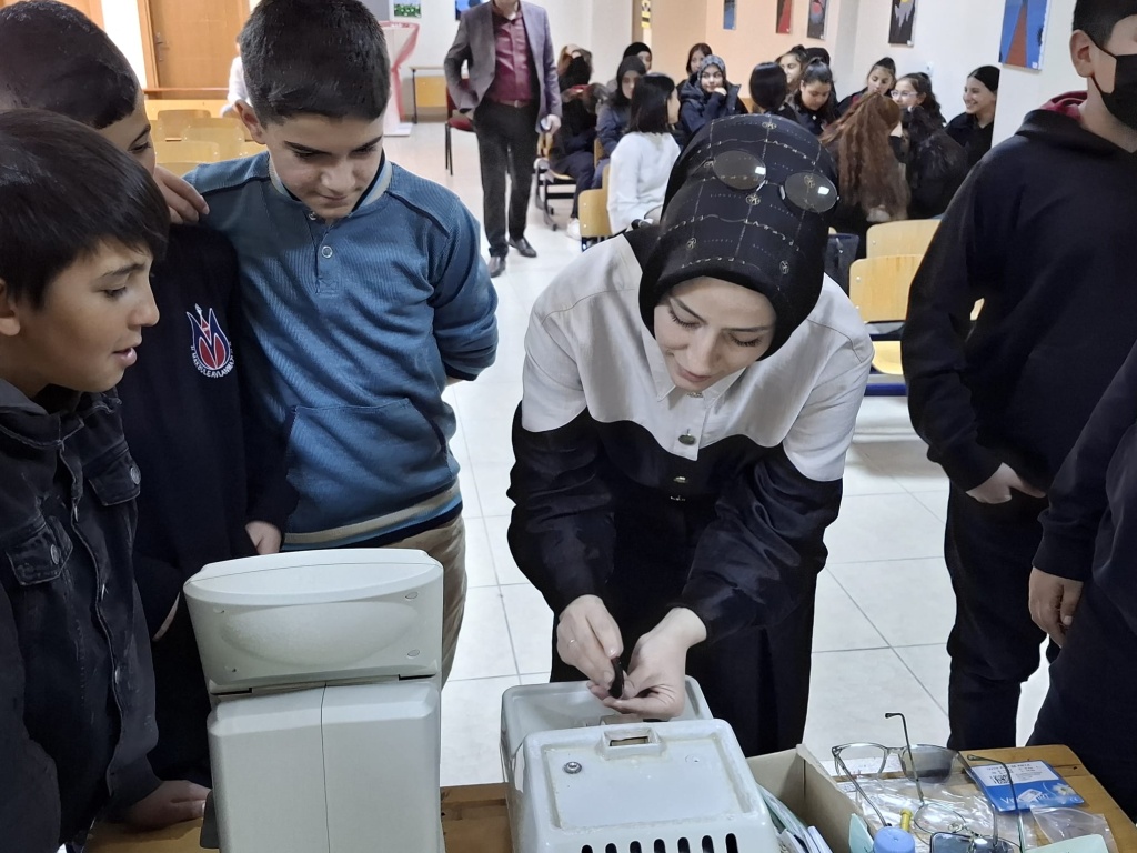 "Meslek Tanıtım Günleri" kapsamında bugün Optisyen Zülal ARSLAN konuğumuz oldu. Öğrencilerimize mesleği hakkında bilgiler verdi ve öğrencilerimizle birlikte uygulamalar yaptı. Değerli vaktini bize ayırdığı için kendisine teşekkür ediyoruz.